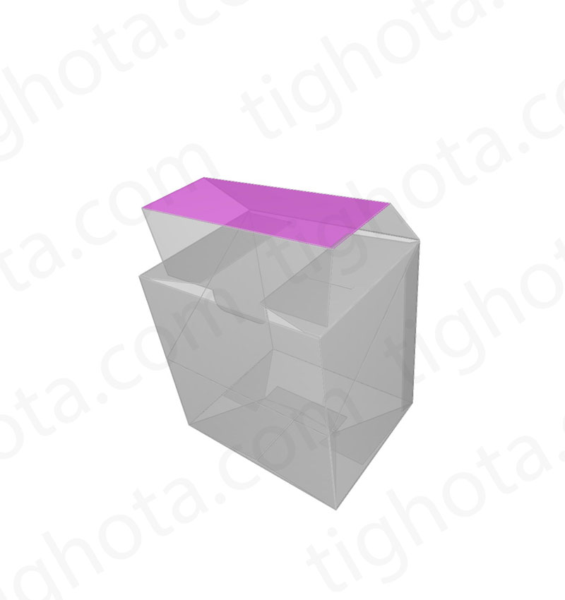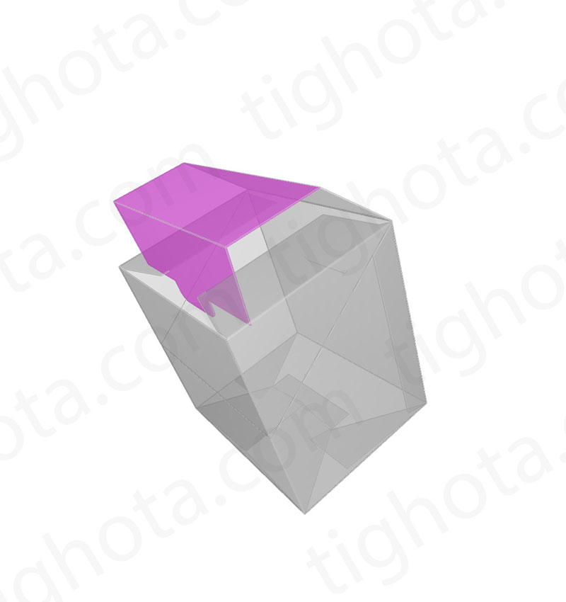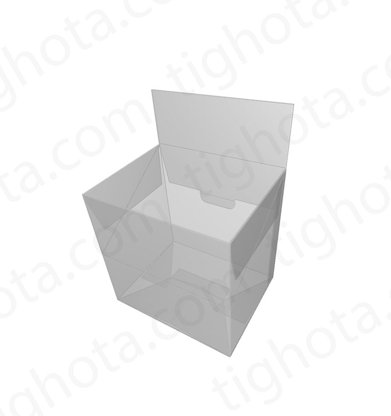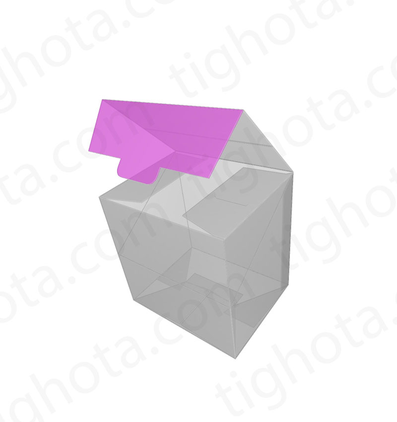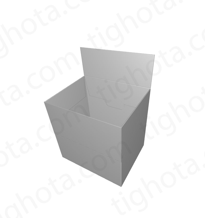 جعبه استند شو مقوایی، زبانه درگیر جهت ایستادن تابلوی استند، مدل قفل عادی به همراه پرفراژ در طرفین بسته بندی، قفل زیر جعبه لاک باتم، محل اتصال لب چسب EVF11141