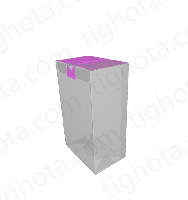 جعبه مقوایی درب از وجه بالای جعبه، مدل قفل عادی به همراه زبانه قفل اضافی، قفل زیر جعبه لاک باتم، محل اتصال لب چسب EVF11120