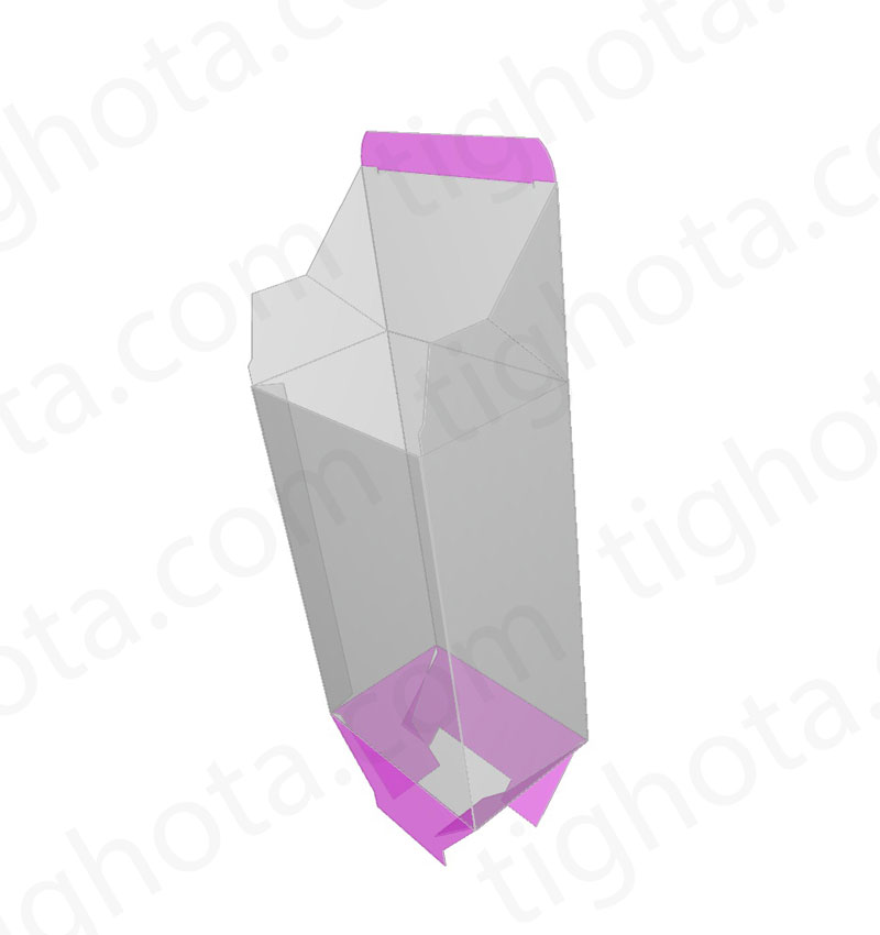 جعبه مقوایی درب از وجه بالای جعبه، مدل قفل عادی گرد گیر ها با خط تا متصل به بدنه، قفل زیر جعبه لاک باتم، محل اتصال لب چسب EVF11190