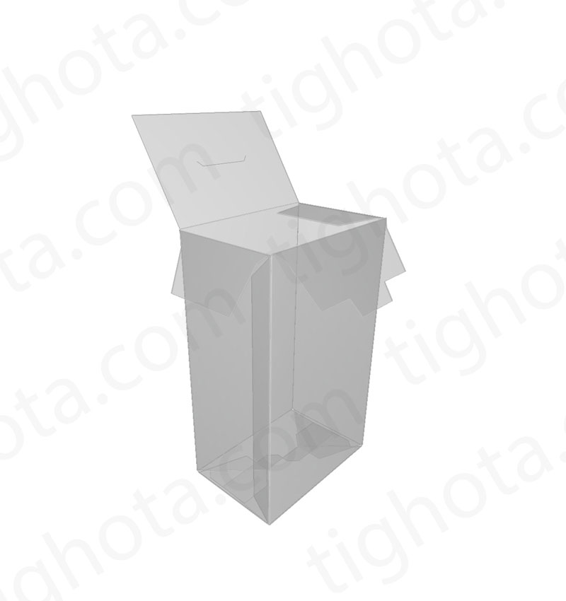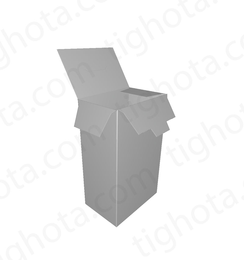 جعبه مقوایی درب از وجه بالای جعبه ، بسته شدن توسط زبانه متصل به در ، قفل زیر جعبه کراش لاک باتم، محل اتصال لب چسب EVF11240